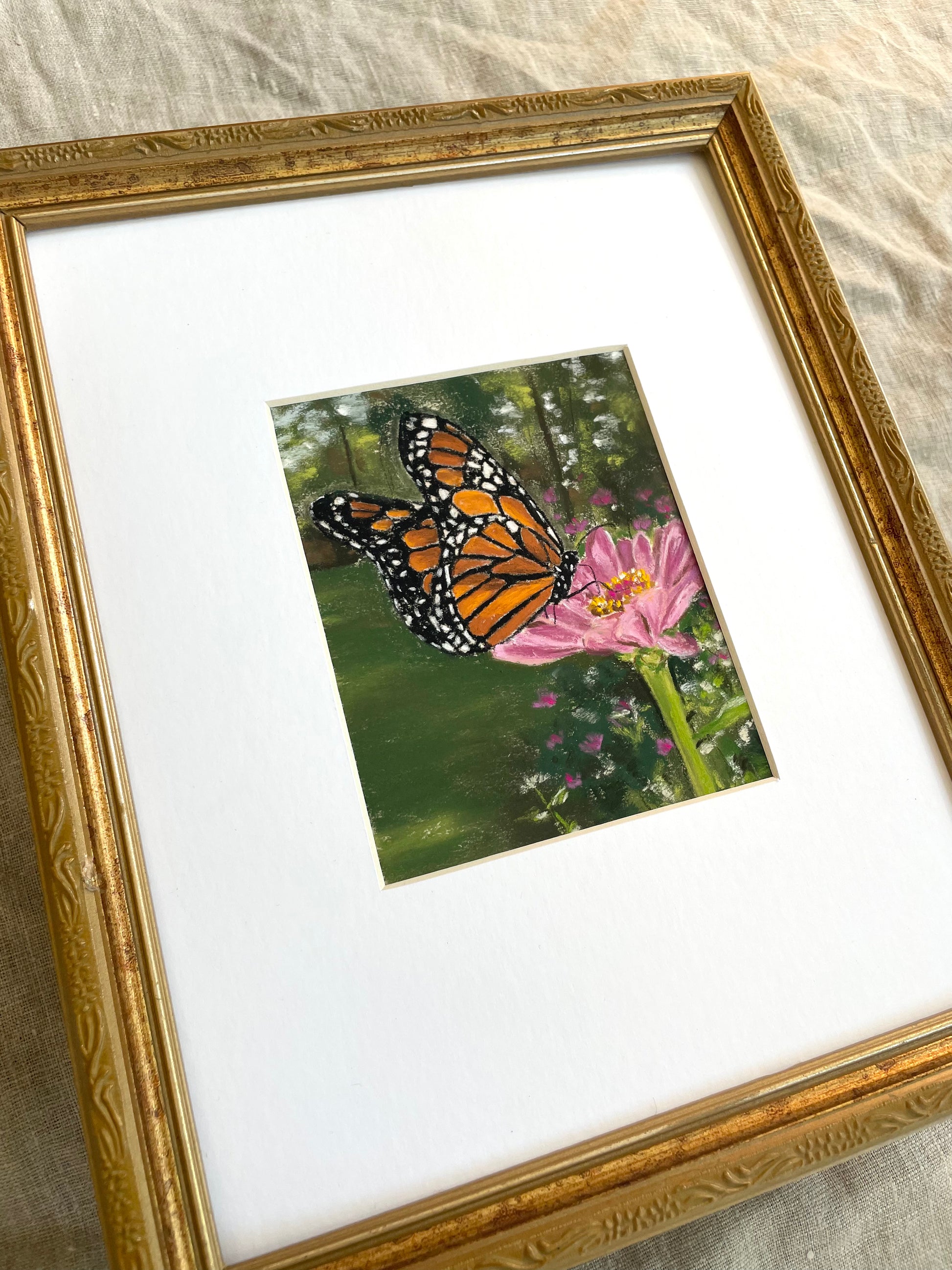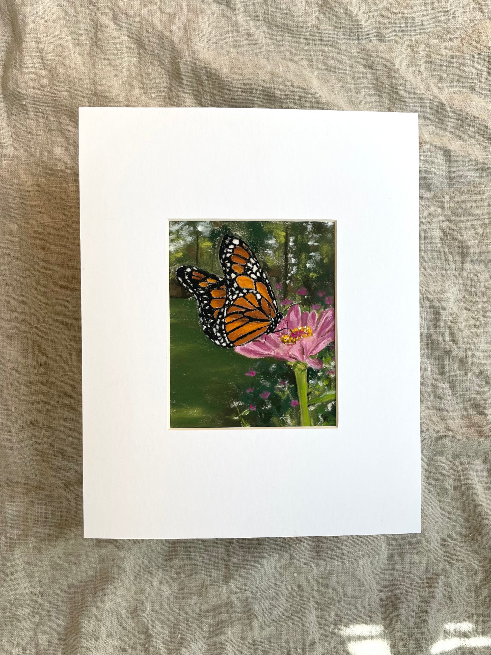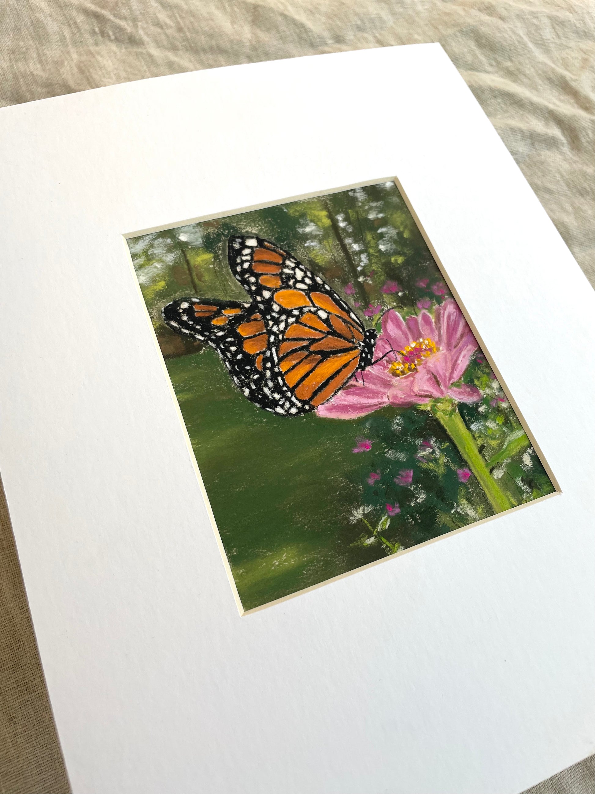 Artwork is matted in white 8x10 beveled custom matt-board ready for a frame. Frame is NOT included. Pastels need to be handled with care. Paintings are sealed with fixative but are still to be handled with care. It is recommended to frame behind glass.