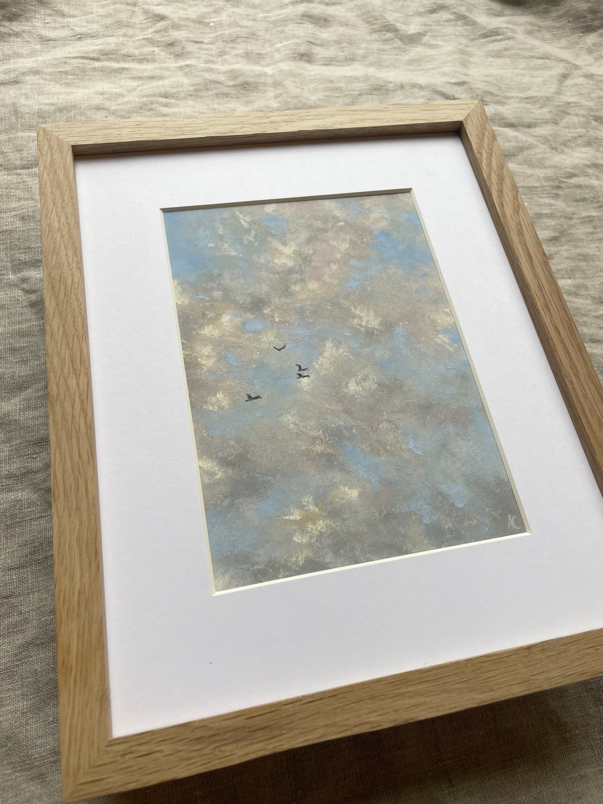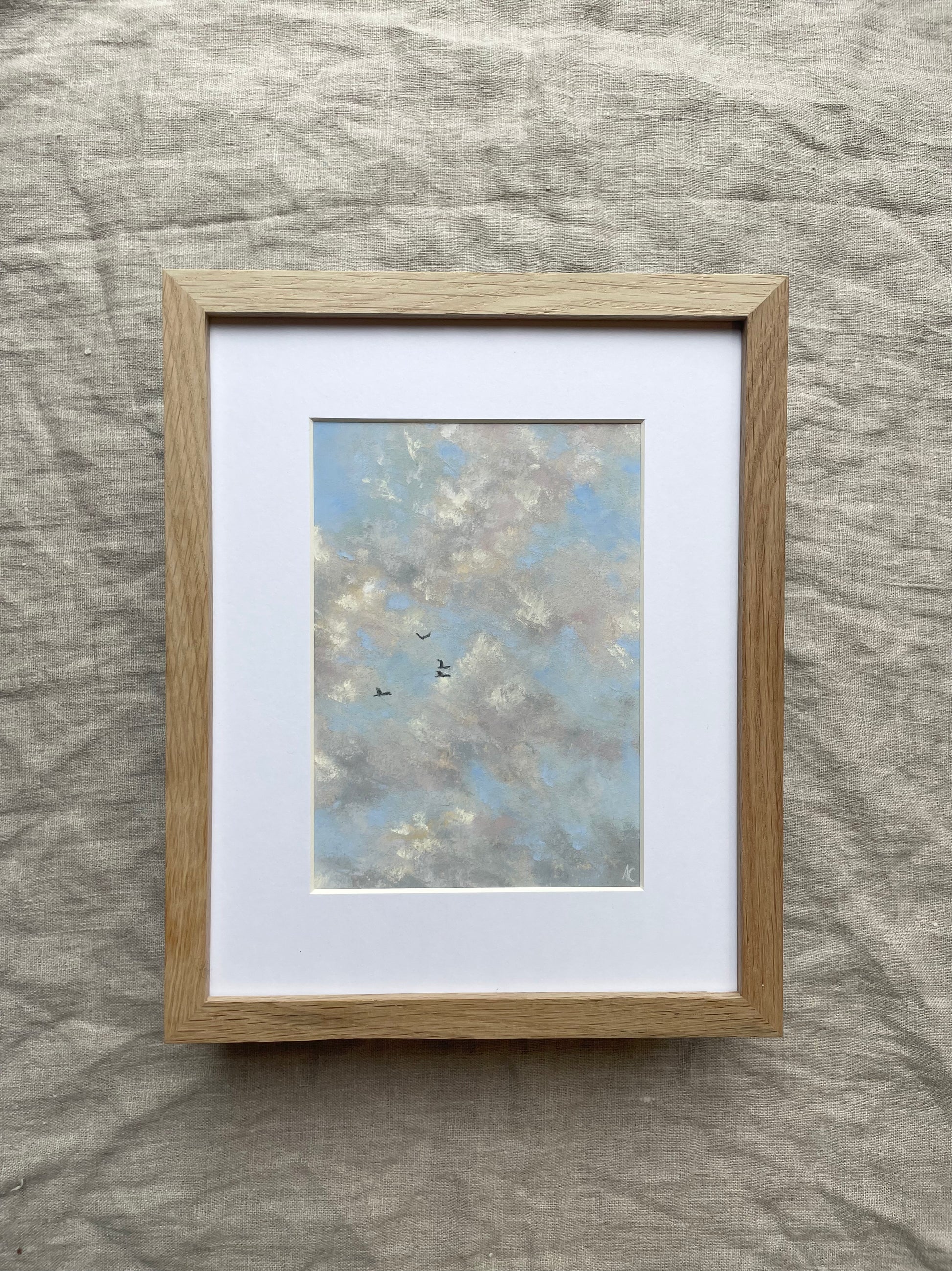 Option to add a white beveled custom matt-board ready for a 8x10 frame. Frame is NOT included. Pastels need to be handled with care. Paintings are sealed with fixative but are still to be handled with care. It is recommended to frame behind glass.