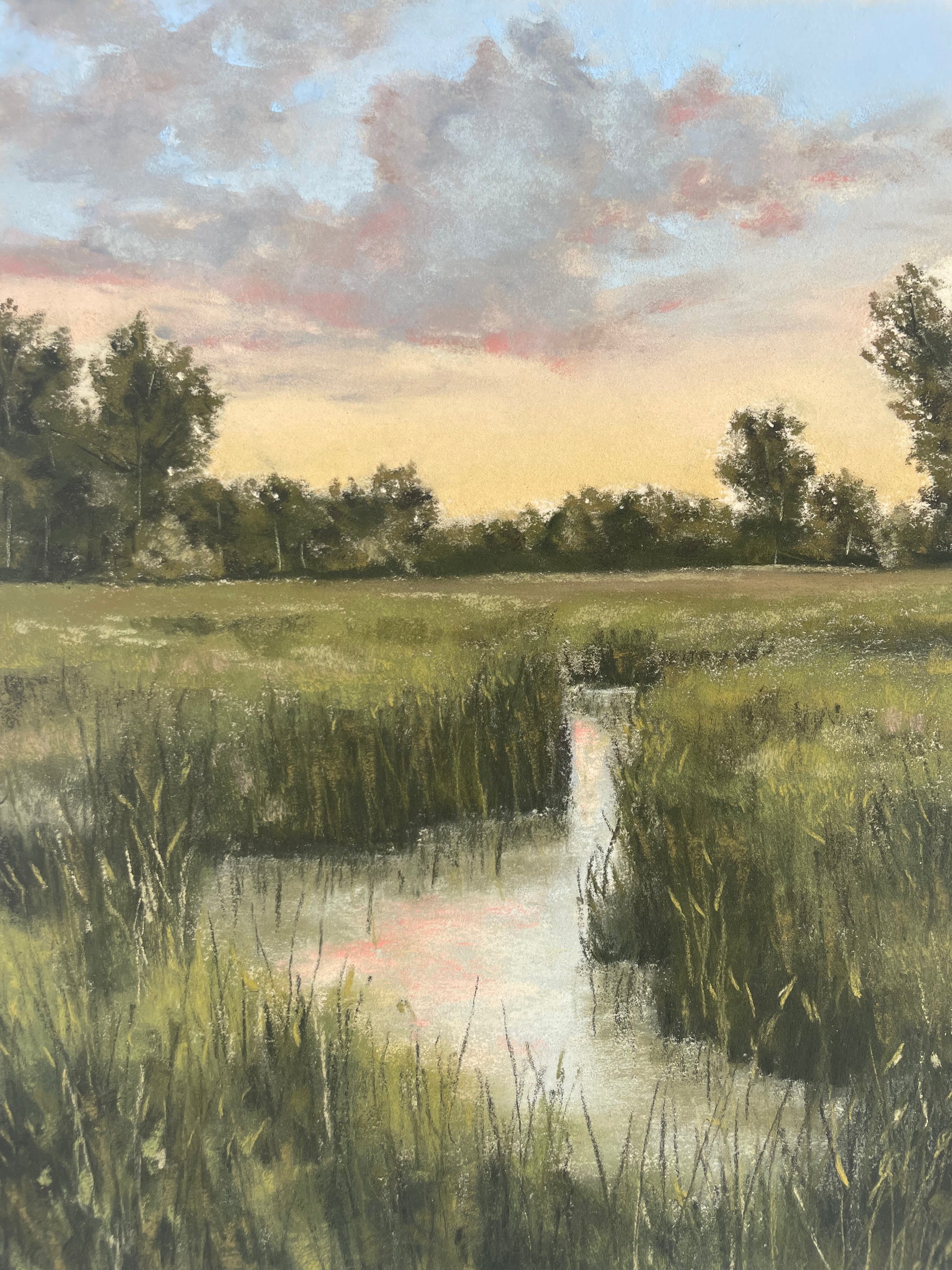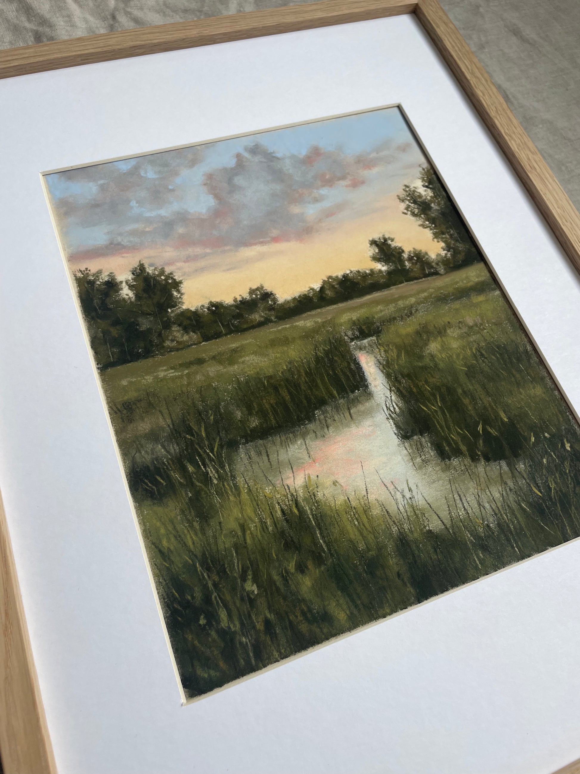 Soft pastels need to be handled with care. Paintings are sealed with fixative but are still to be handled with care. It is recommended to frame behind glass.