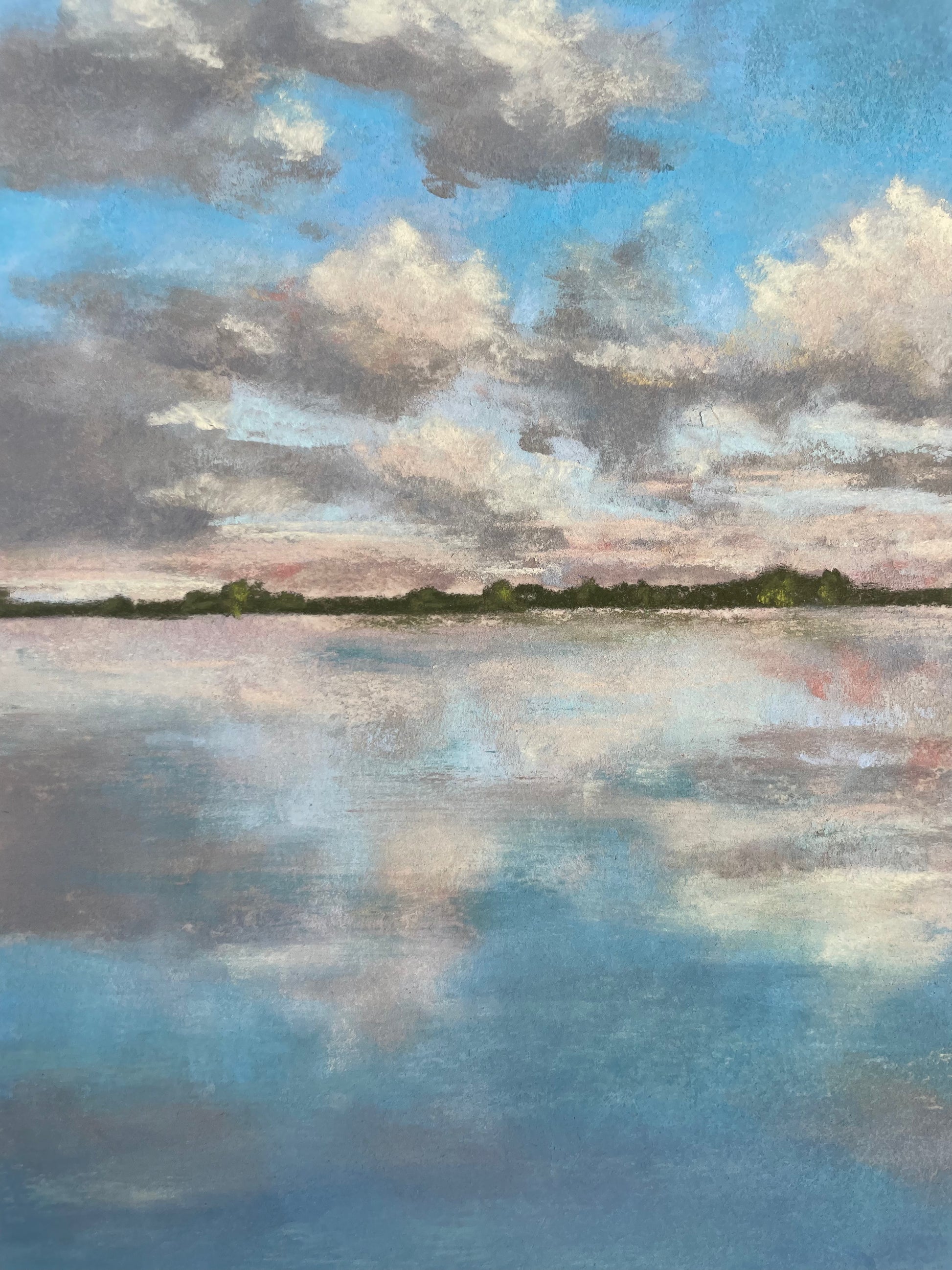 Soft pastels need to be handled with care. Paintings are sealed with fixative but are still to be handled with care. It is recommended to frame behind glass.
