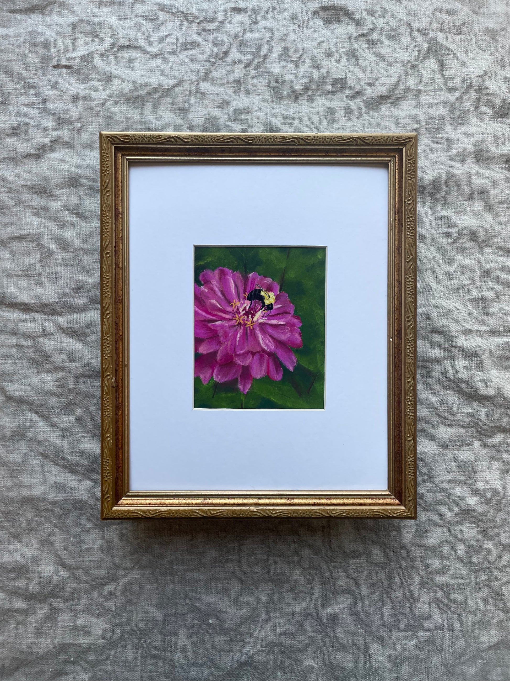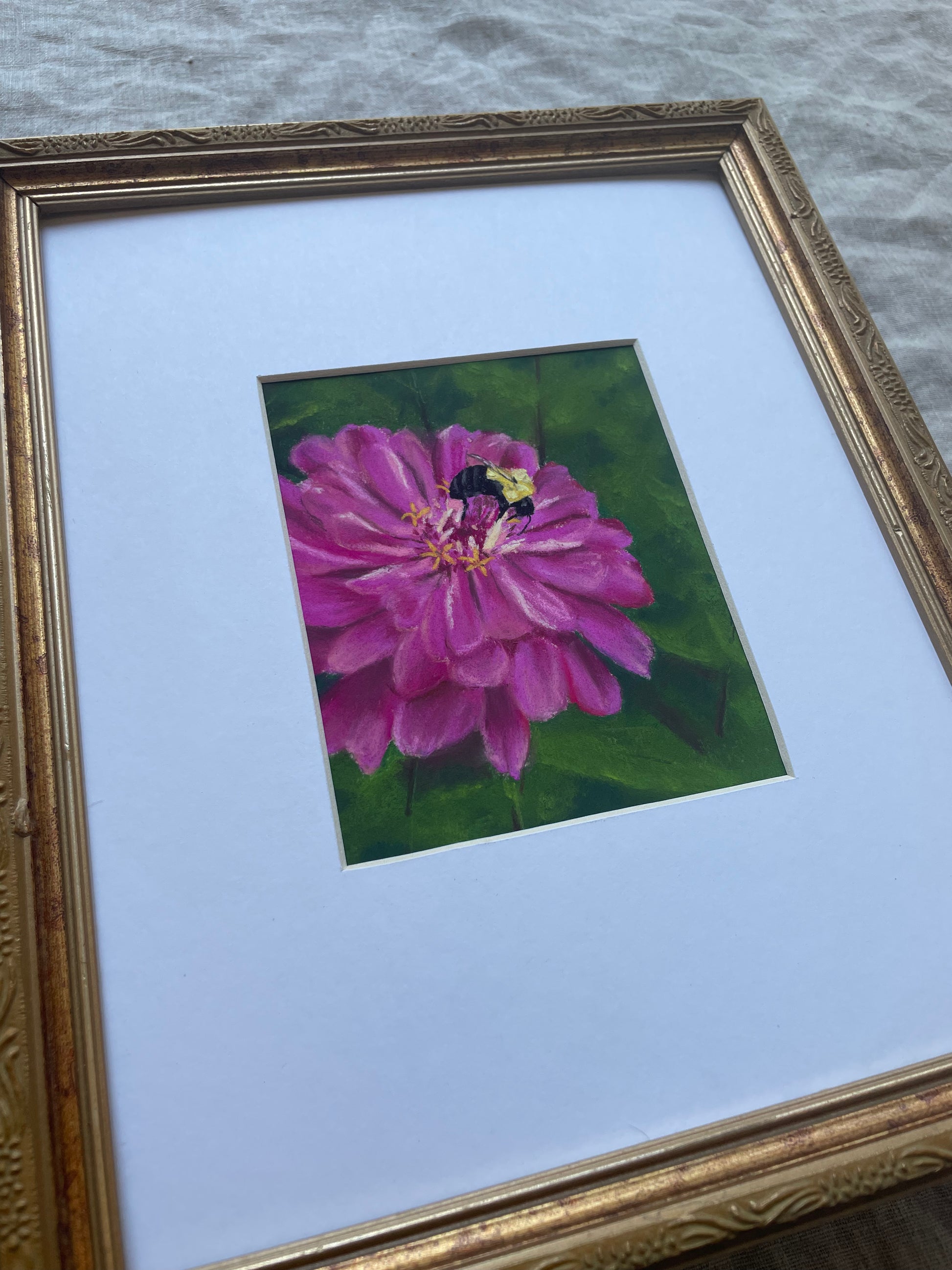 Artwork is matted in white beveled custom matt-board ready for a 8x10 frame. Frame is NOT included. Pastels need to be handled with care. Paintings are sealed with fixative but are still to be handled with care. It is recommended to frame behind glass.