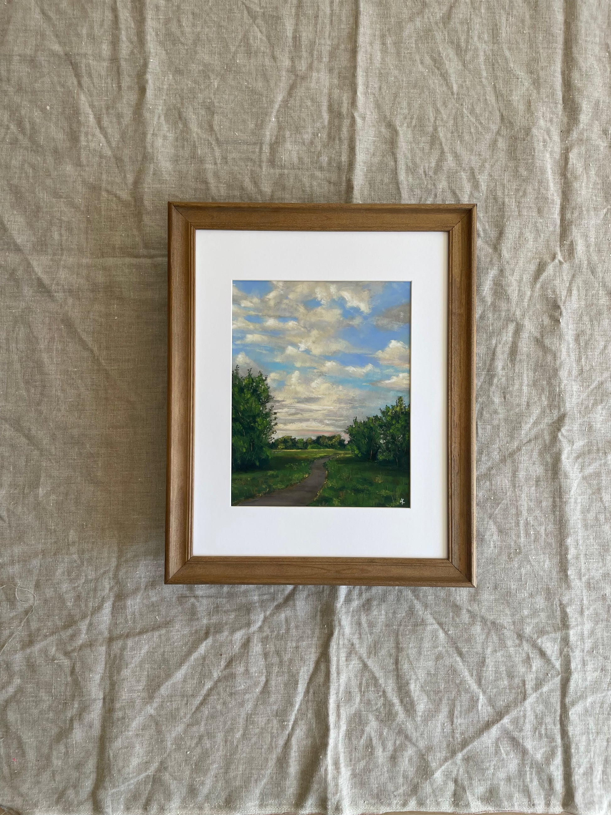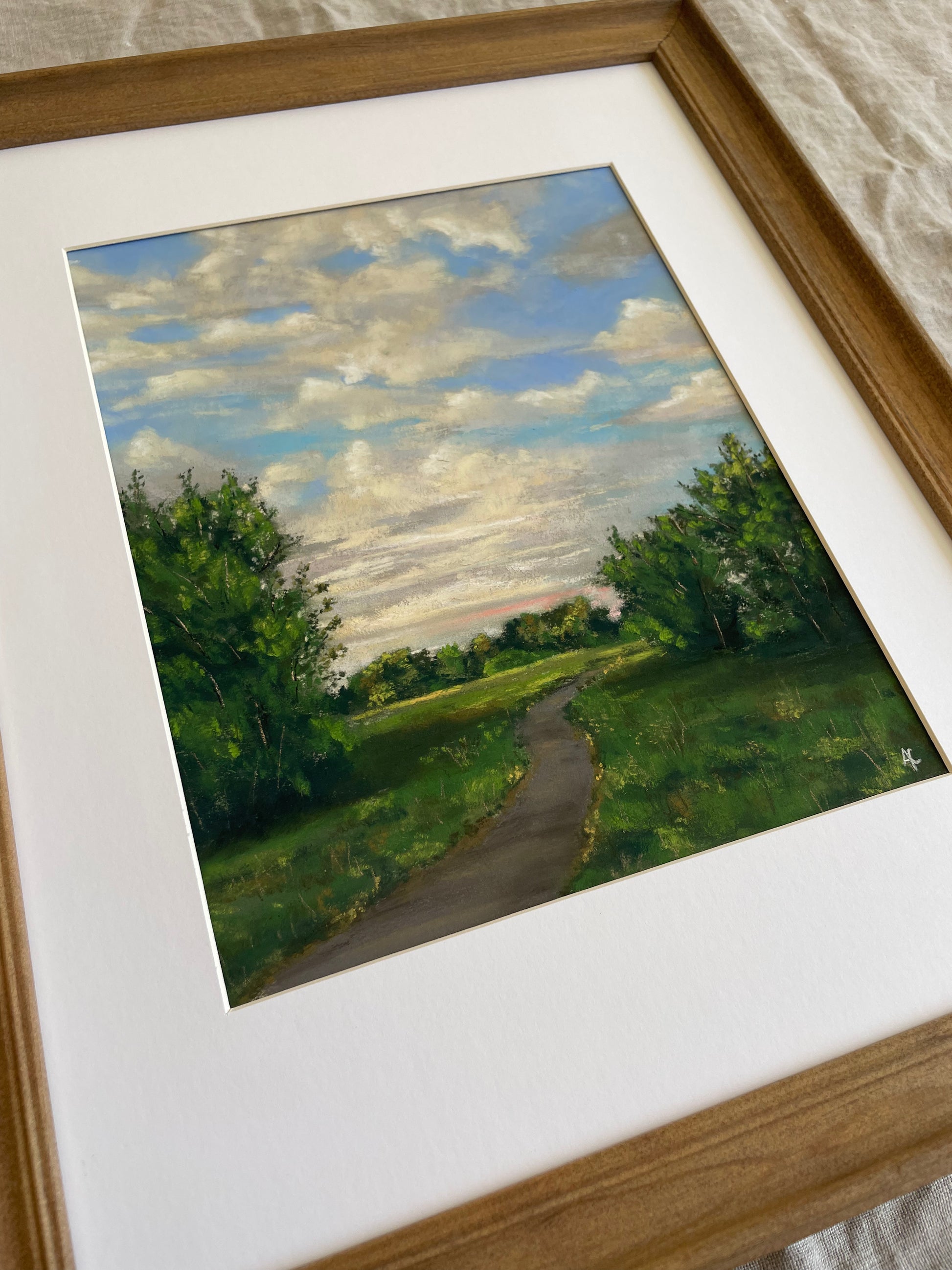 Soft pastels need to be handled with care. Paintings are sealed with fixative but are still to be handled with care. It is recommended to frame behind glass. Frame is NOT included.