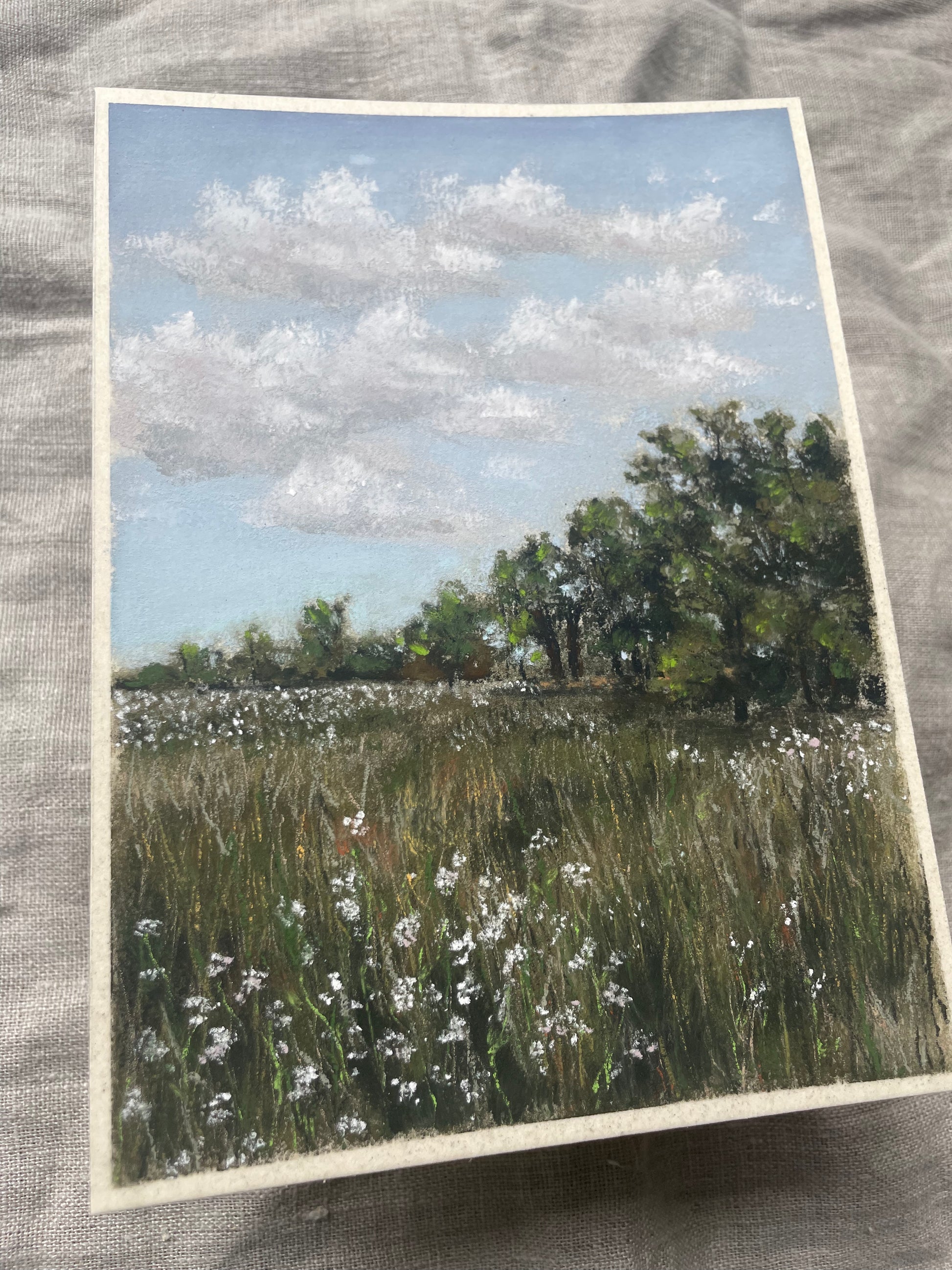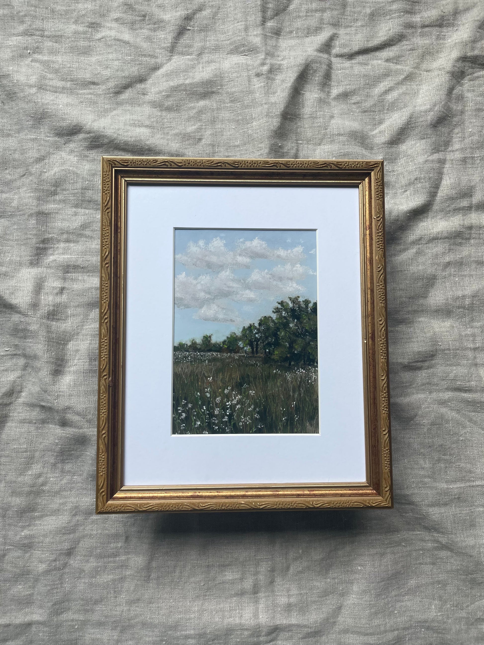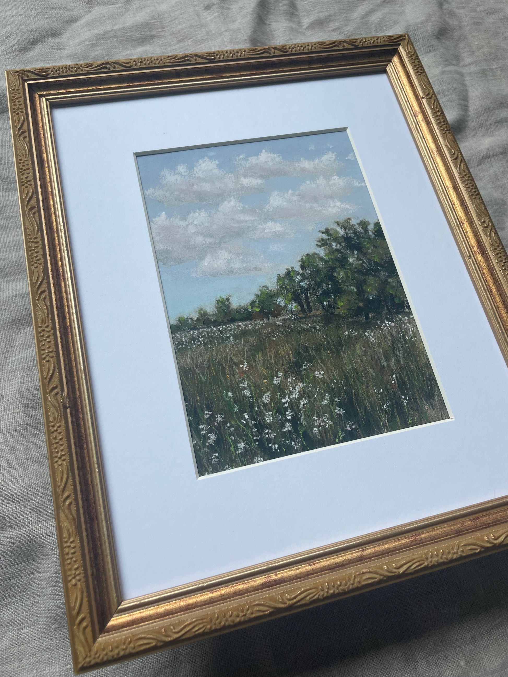 Soft pastels need to be handled with care. Paintings are sealed with fixative but are still to be handled with care. It is recommended to frame behind glass. Frame is NOT included.
